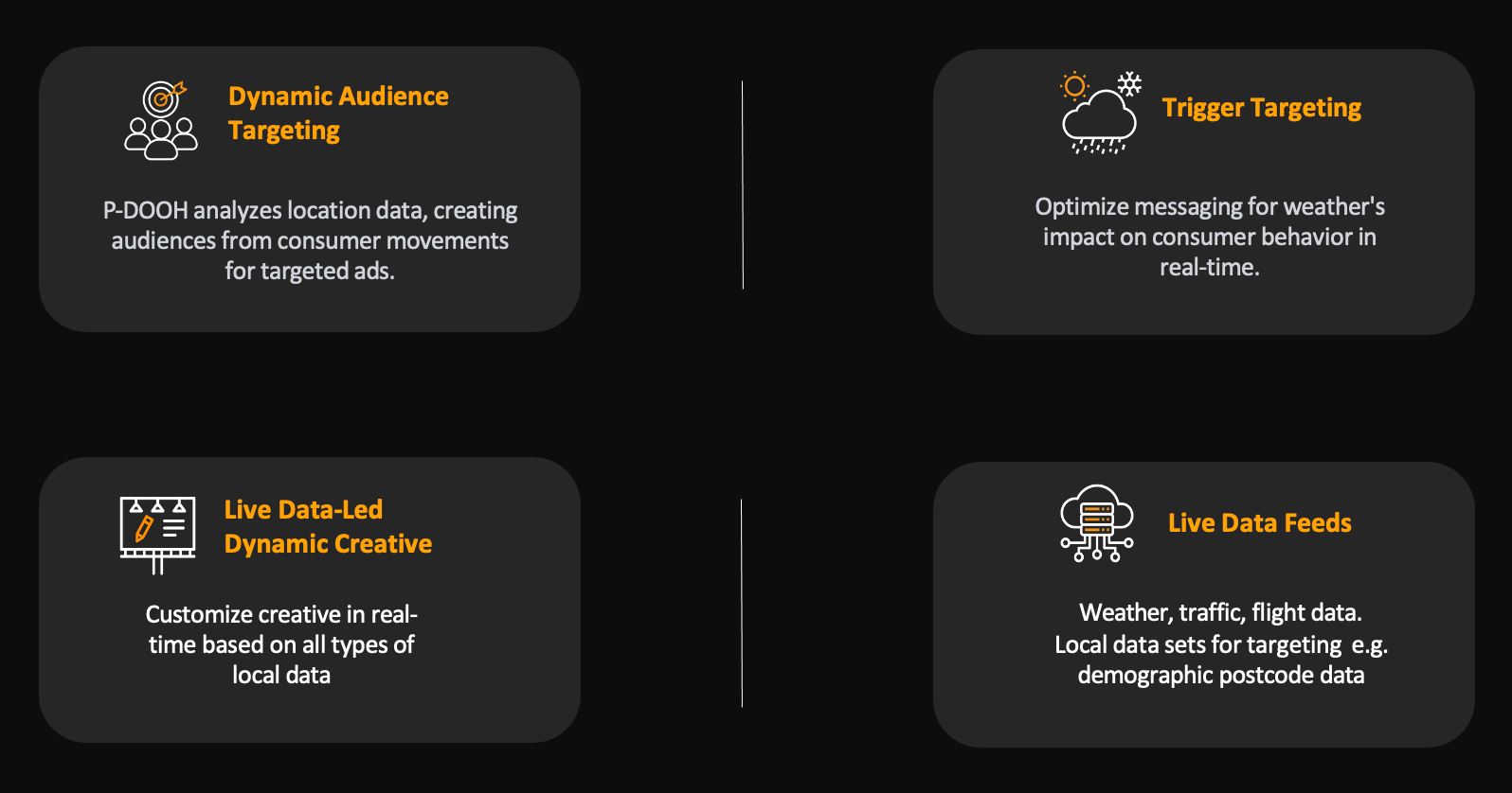 Absolutely. This is a dynamic pDOOH setup that supports live creative changes triggered by data like weather, time, or footfall.