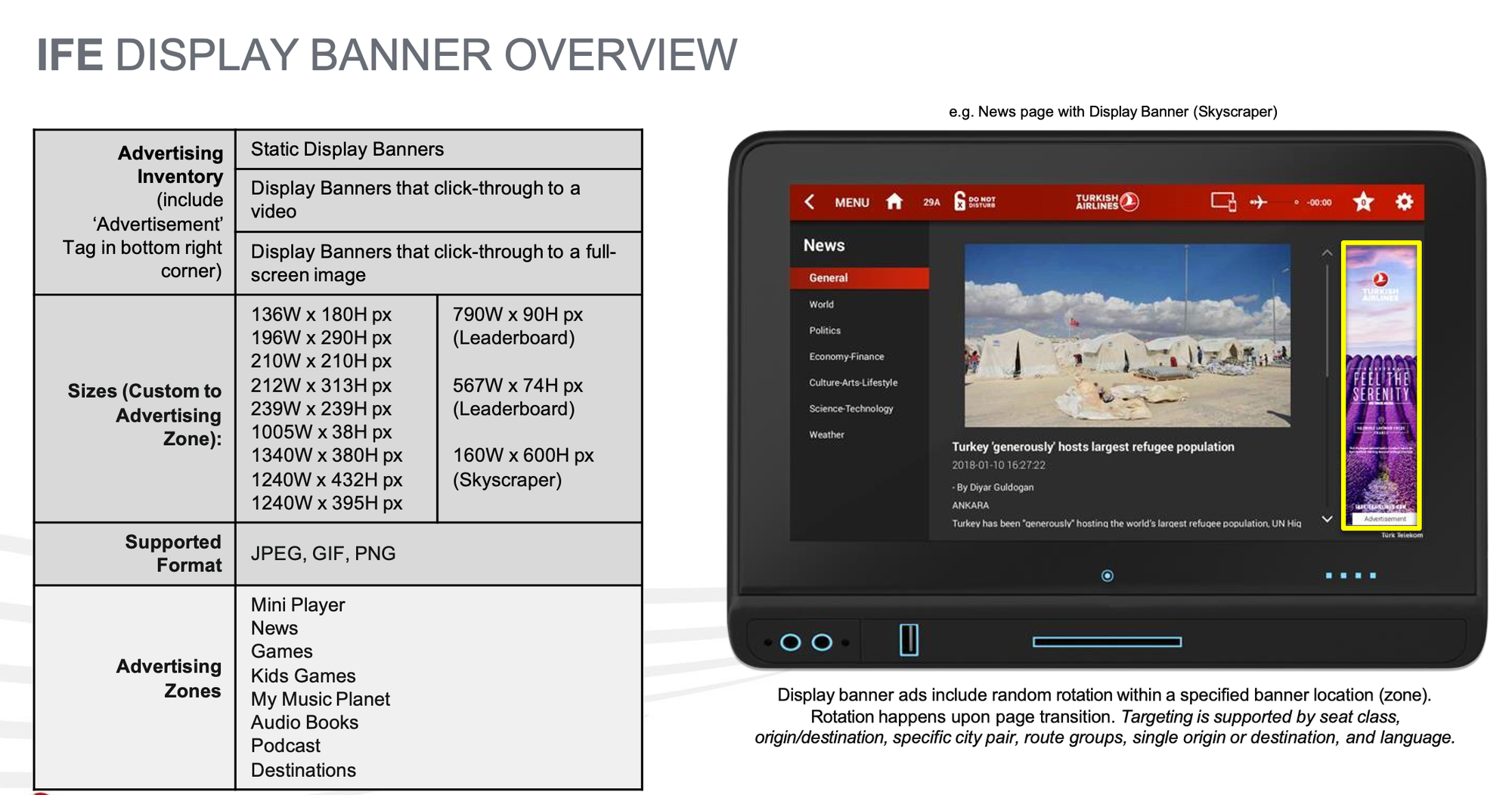 Display Banners Across Seatback IFE Zones