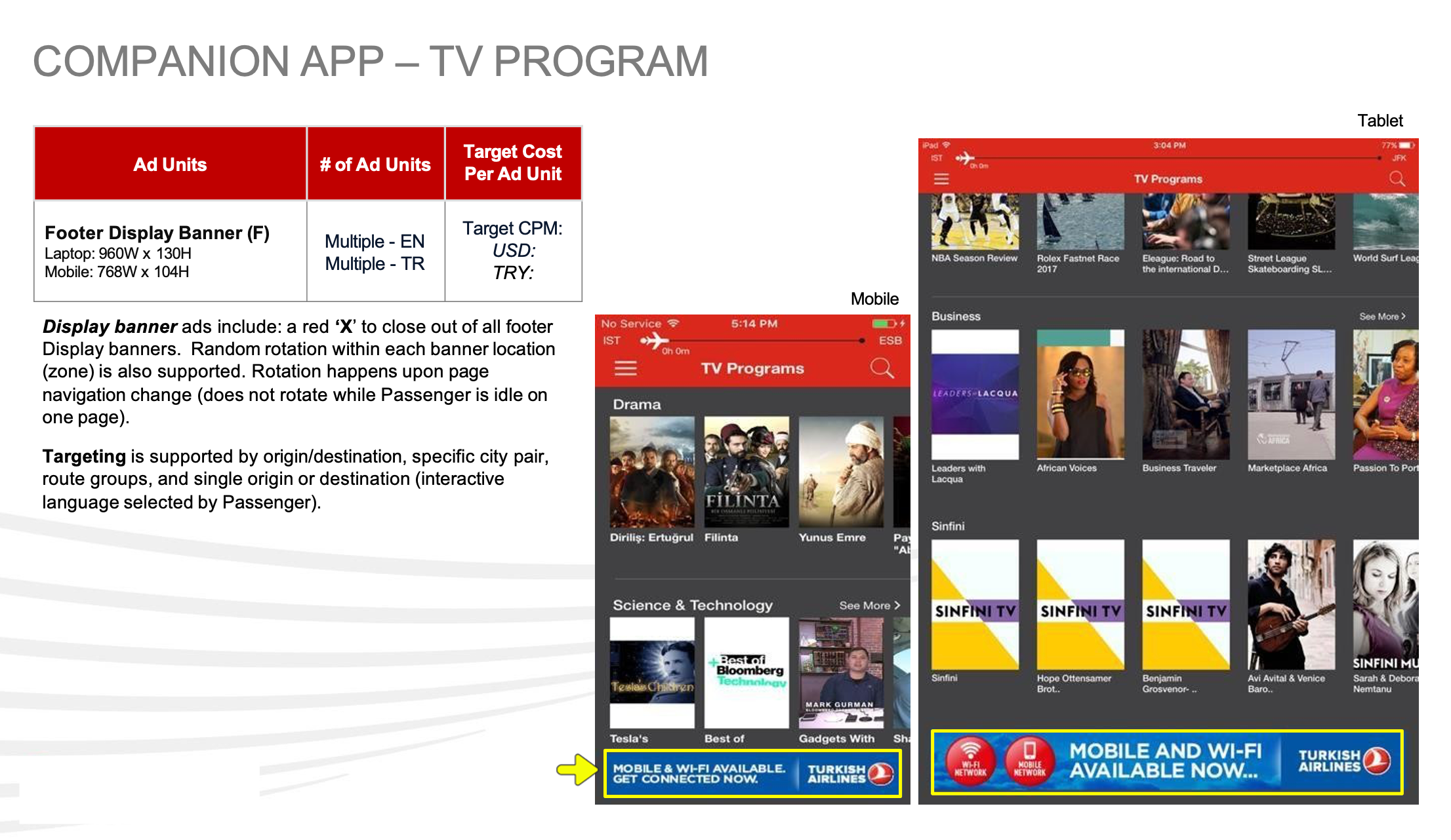 Banner Ads on Turkish Airlines Mobile & Laptop Portal