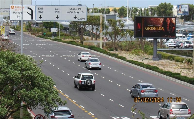 Strategically located along the Airport Ring Road, this premium digital screen dominates the approach to Cape Town International Airport’s main exit, ensuring high-impact visibility for both incoming and outgoing traffic. As the first major visual contact point for arriving business leaders, global elites, and luxury travelers, it offers brands an unrivaled opportunity to establish a strong, sophisticated presence. The screen's expansive size and high-definition clarity provide a striking visual narrative, perfectly suited for brands seeking to align with affluence and influence.