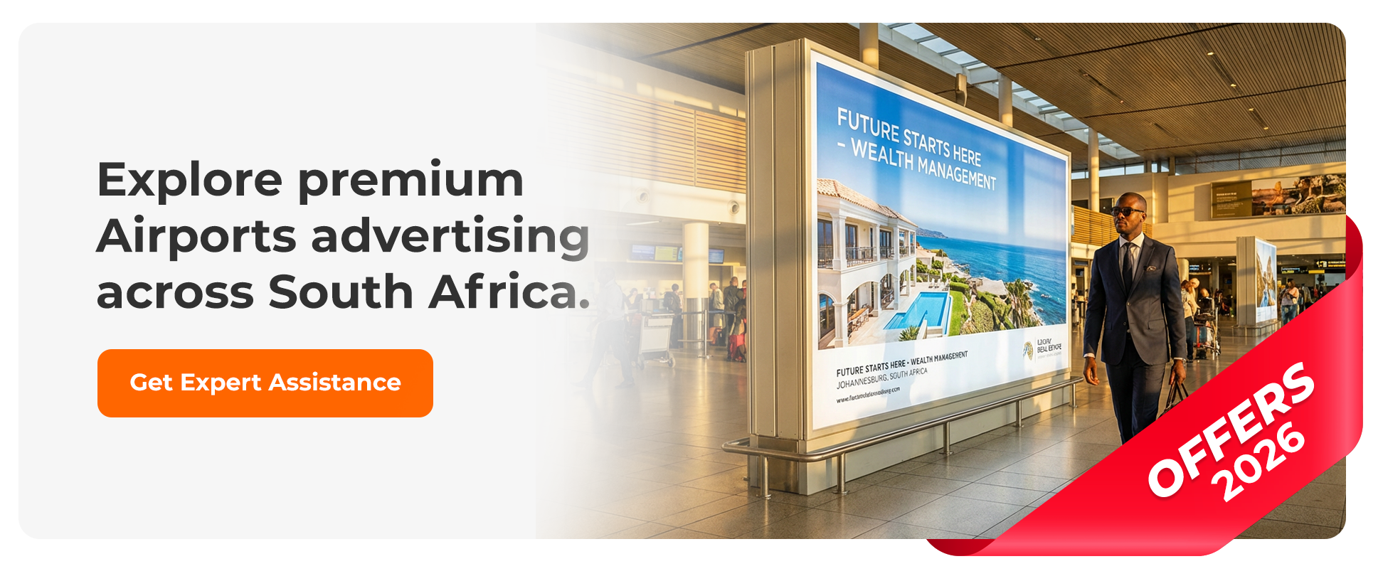 Position your brand in the airports that connect Africa to the world. This curated package features wall panels, banners, and billboards across South Africaâs top international entry points â OR Tambo, Cape Town International, and King Shaka â offering your brand unmissable exposure to millions of travelers every year.