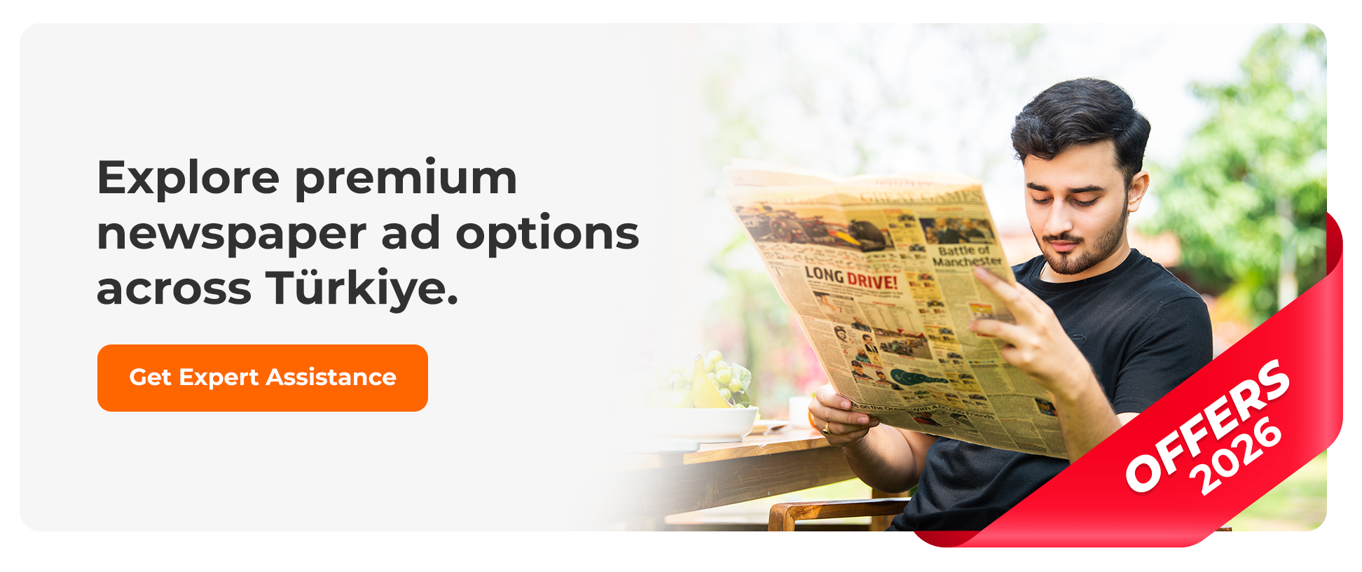 Our global media planners are ready to help you dominate Turkey’s print newsstands with a custom high-impact campaign. Book your free consultation now, and secure your spot in tomorrow’s headlines.
