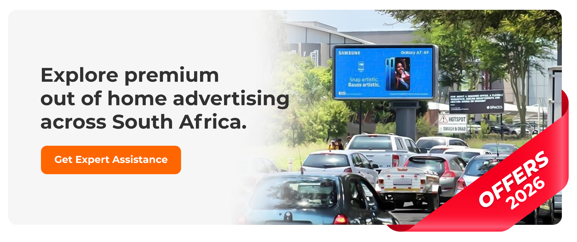 This includes a customized selection of digital screens and a landmark building wrap across Johannesburg, Cape Town, Durban, and Gauteng, tailored to your audience and campaign length.