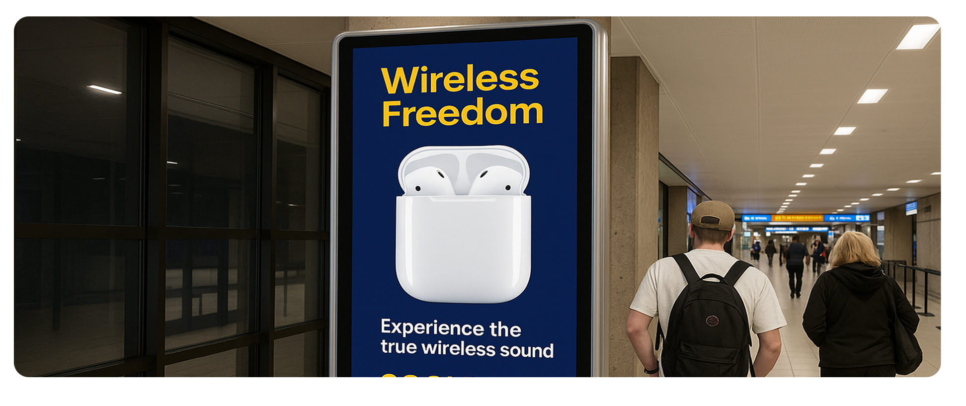 Smart scheduling based on flight schedules, time-of-day, and traveler volume patterns ensures your ads appear at the most effective moments.