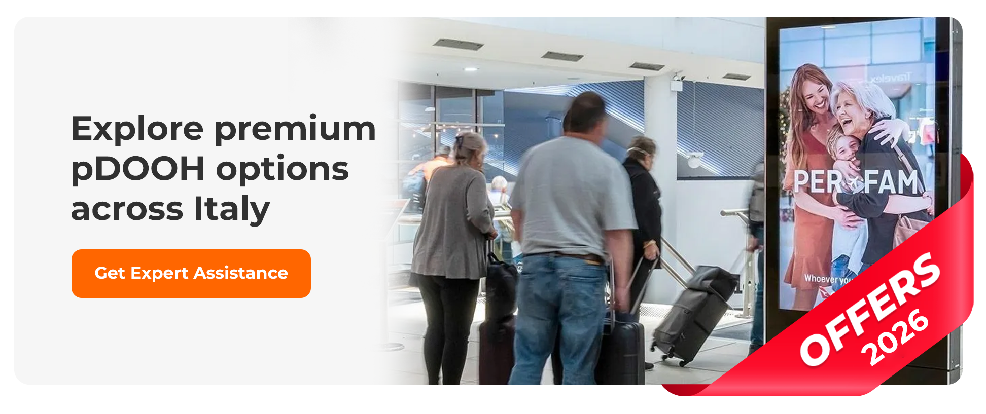 Whether itâs the glamour of Milanâs fashion scene or the influential travelers arriving at Romeâs airports, our Programmatic Digital Out-of-Home (DOOH) packages deliver unrivaled visibility, advanced audience targeting, and total campaign control. Covering Italyâs most influential touchpointsâfrom busy transits to luxury malls, premium office zones to top international airportsâour handpicked placements position your brand where it matters most.