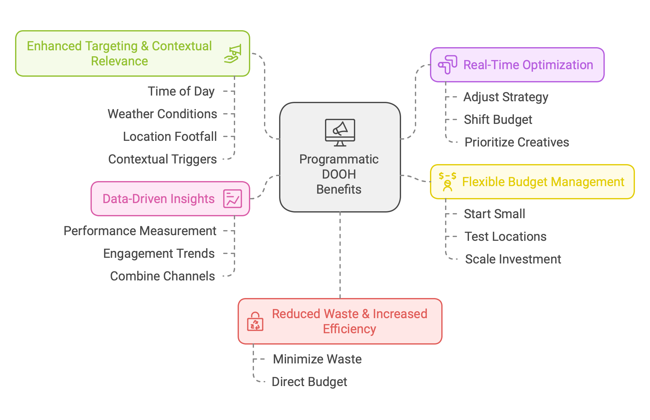 Programmatic platforms enable you to adjust your campaign strategy instantly. If one location is underperforming, you can shift budget to another, or if certain creatives resonate better during lunchtime, you can prioritize those times for maximum impact. - Flexible Budget Management: