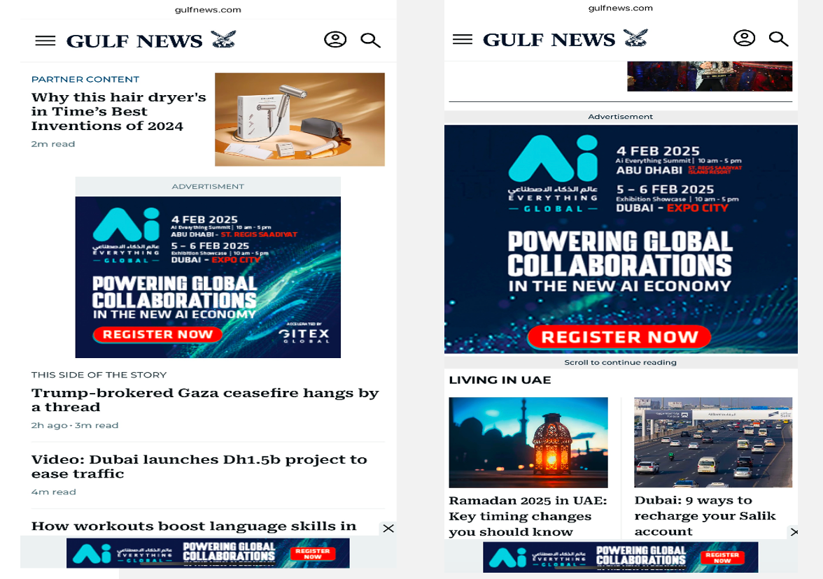 KhaleejTimes.com / AlBayan.ae / AlKhaleej.ae – Roadblock Ads & HPTO