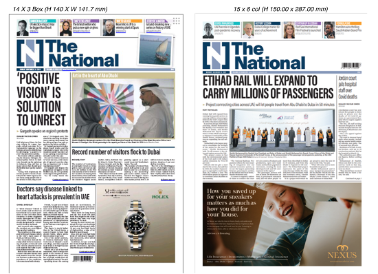 - Front Page Ad: First-impression impact on UAE's most-read paper.