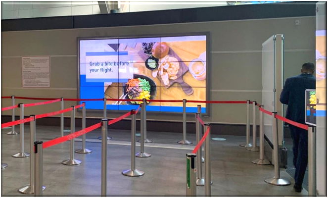 Situated directly at the security checkpoint, the Digital Video Wall capitalizes on a natural pause in traveller activity.