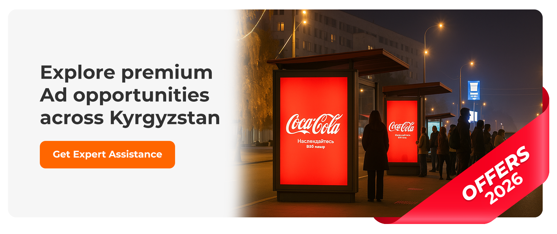 Reach Kyrgyzstanâs most valuable audiences through a fully integrated multi-platform media campaign spanning premium airports, malls, TV, radio, and digital news. This high-visibility package places your brand in front of millions of local and international viewers, commuters, shoppers, and digital users in Bishkek, Osh, and beyond.