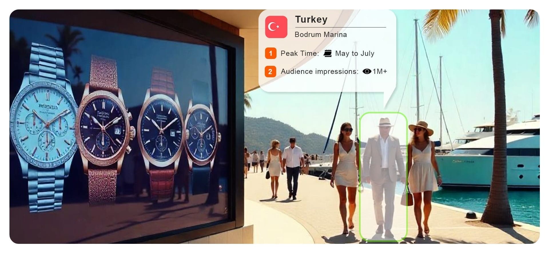We offer precise intelligence on timing, environment, and audience concentration so your brand is seen not only in premium spaces but in the right context — when minds are open and influence is high.